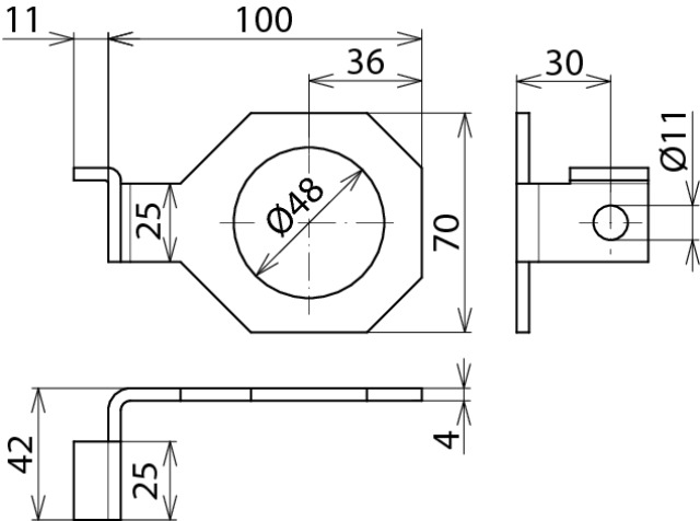 Anschlussbügel IF1 abgewinkelt Bohrdurchmesser d1 48 mm