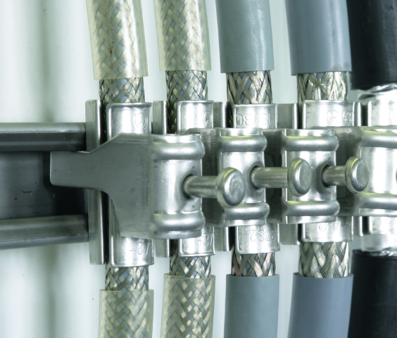 Schirmanschlussklemmen zur Erdung von Kabelschirmen auf Ankerschiene. Geeignet zum Blitzschutz-Potentialausgleich. Der nachträgliche Einsatz ohne Unterbrechen des Leiterschirmes ist möglich – werkzeuglose Montage.