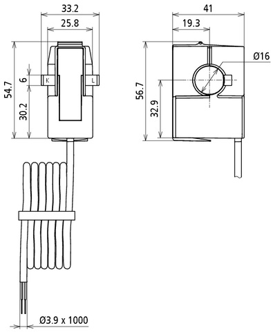 Klappkern-Stromwandler zur elektronischen Messung von Wechselstrom (AC) mit galvanischer Trennung zwischen Primär- (Leistung) und Sekundärkreis (Messung) bis 300V CAT III.