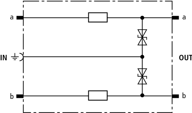 Schutzstecker 1 DA energetisch koordiniert zu DRL-Steckmagazin als einstufiger Endgeräteschutz mit Entkopplungsimpedanzen. Besonders geeignet für Signalkreise mit gemeinsamen Bezugspotential. Erdung über EF 10 DRL. Nur für Trennleisten oder DRL-Steckmagazin.