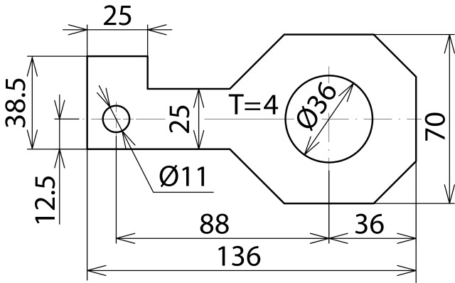 Anschlussbügel IF3 gerade Bohrdurchmesser d1 36 mm