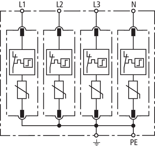 Überspannungsableiter Typ 2 DEHNguard M 4-polig für TN-S-Systeme